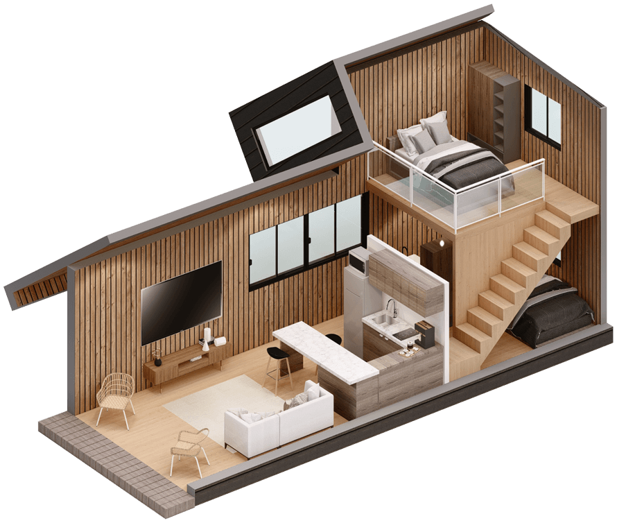 These spaces are designed to be as little as 120 Sq Ft. but feel like double. Luxury Sheds for offices, eye popping ADUs and much more.