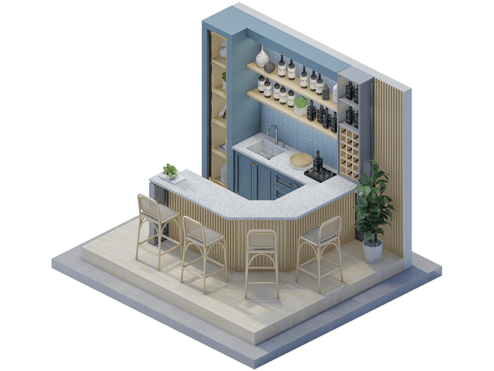 Quickly choose from a selection of customizable product lines to match your vision for an beach bar.