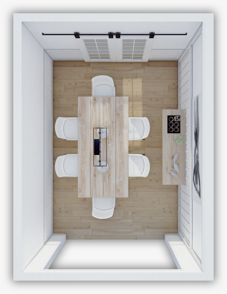 “I absolutely love my industrial dining room design from Tiny Rooms! It’s so chic and unique. I love the metal and wood combination. It really makes my dining room stand out. The design is also very functional. The metal and wood combination makes the room very sturdy and durable. I don’t have to worry about my kids or pets knocking anything over.”