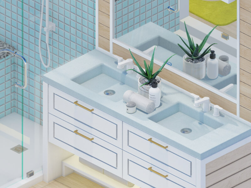 Bathrooms today are more than just a place to do your business. They are beautiful, serene retreats that can help you decompress from your daily routine. A space where you can be at peace is essential to your well-being. Your design is a refreshing and modern blend of flexibility, multi-functionality, and style. It features clean lines and layouts with pops of bold colors, as well as geometric patterns, flowing curves, and hard angles, which all add interest without being overpowering. The extra space in the bathroom has allowed us to create luxurious, custom-made vanities, storage towers, and mirrors that also double as artwork. If you are looking for a bathroom with a modern design, you have come to the right place!