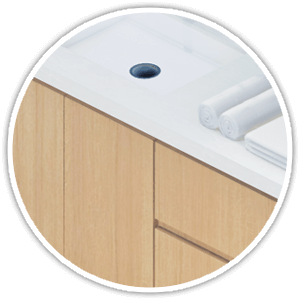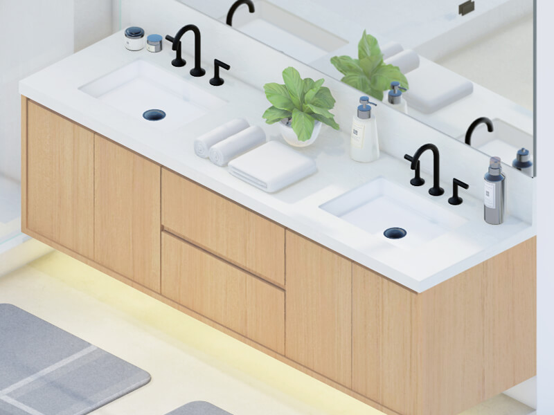The vanity lavatory features a streamlined countertop with a sink, providing both functionality and style. The materials used range from natural stone to sleek, glossy surfaces like quartz or tempered glass, offering a variety of options to suit your taste.