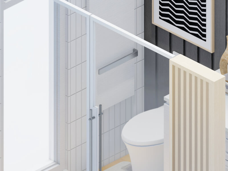 The divider features intricate patterns or frosted designs that add a touch of elegance and privacy to your shower space. The craftsman style shower divider seamlessly blends with other elements in your bathroom, creating a cohesive and harmonious design.