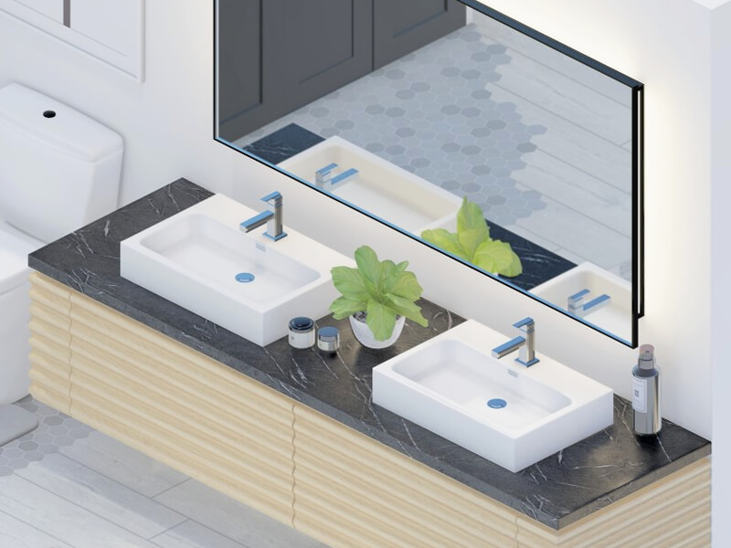 Bathrooms today are more than just a place to do your business. They are beautiful, serene retreats that can help you decompress from your daily routine. A space where you can be at peace is essential to your well-being. Your design is a refreshing and modern blend of flexibility, multi-functionality, and style. It features clean lines and layouts with pops of bold colors, as well as geometric patterns, flowing curves, and hard angles, which all add interest without being overpowering. The extra space in the bathroom has allowed us to create luxurious, custom-made vanities, storage towers, and mirrors that also double as artwork. If you are looking for a bathroom with a modern design, you have come to the right place!