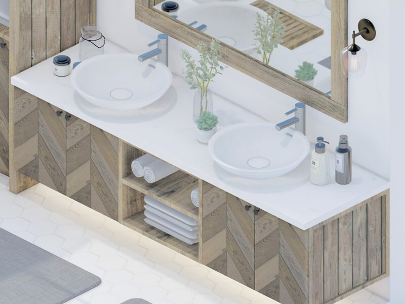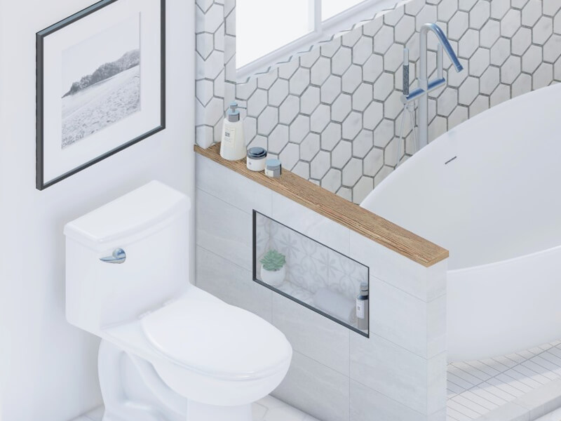 Bathrooms today are more than just a place to do your business. They are beautiful, serene retreats that can help you decompress from your daily routine. A space where you can be at peace is essential to your well-being. Your design is a refreshing and modern blend of flexibility, multi-functionality, and style. It features clean lines and layouts with pops of bold colors, as well as geometric patterns, flowing curves, and hard angles, which all add interest without being overpowering. The extra space in the bathroom has allowed us to create luxurious, custom-made vanities, storage towers, and mirrors that also double as artwork. If you are looking for a bathroom with a modern design, you have come to the right place!