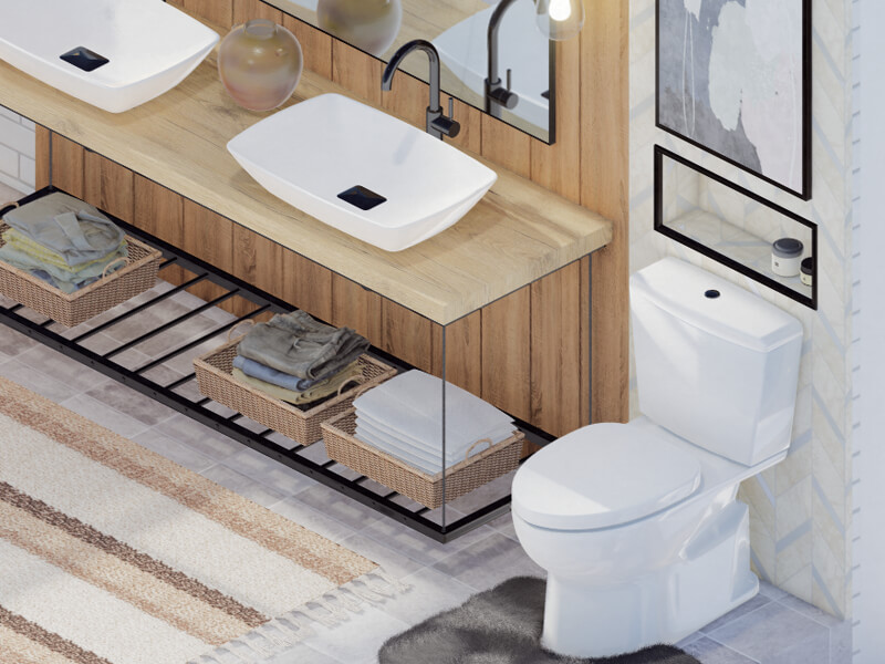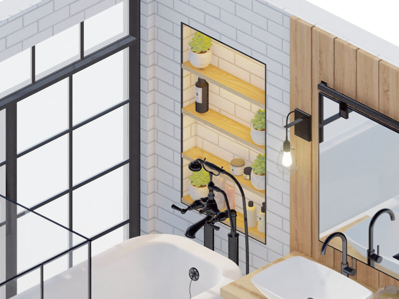 This artistic architectural theme is ideal for people interested in making their bathroom stay trendy, beautiful, and convenient. This style is inspired by the industrial era, which focuses on heavy-duty and rugged materials like copper, steel, and weathered wood. This classic bathroom style has a contemporary twist, making your bathroom Instagram-worthy with its rustic look and beautiful lights hanging by wires from the ceiling. This style makes your bathroom look like it's featured in a magazine.
