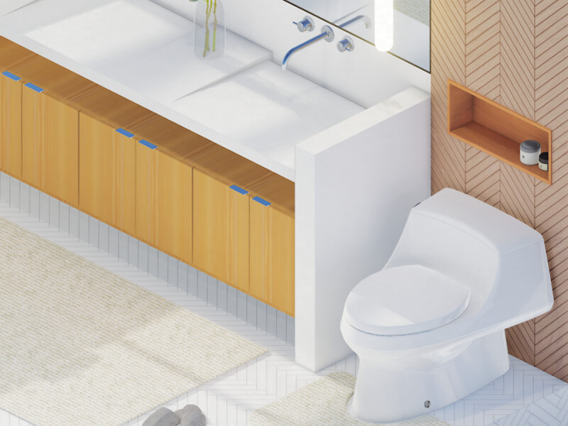 Bathrooms today are more than just a place to do your business. They are beautiful, serene retreats that can help you decompress from your daily routine. A space where you can be at peace is essential to your well-being. Your design is a refreshing and modern blend of flexibility, multi-functionality, and style. It features clean lines and layouts with pops of bold colors, as well as geometric patterns, flowing curves, and hard angles, which all add interest without being overpowering. The extra space in the bathroom has allowed us to create luxurious, custom-made vanities, storage towers, and mirrors that also double as artwork. If you are looking for a bathroom with a modern design, you have come to the right place!
