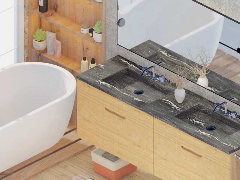 Bathrooms today are more than just a place to do your business. They are beautiful, serene retreats that can help you decompress from your daily routine. A space where you can be at peace is essential to your well-being. Your design is a refreshing and modern blend of flexibility, multi-functionality, and style. It features clean lines and layouts with pops of bold colors, as well as geometric patterns, flowing curves, and hard angles, which all add interest without being overpowering. The extra space in the bathroom has allowed us to create luxurious, custom-made vanities, storage towers, and mirrors that also double as artwork. If you are looking for a bathroom with a modern design, you have come to the right place!
