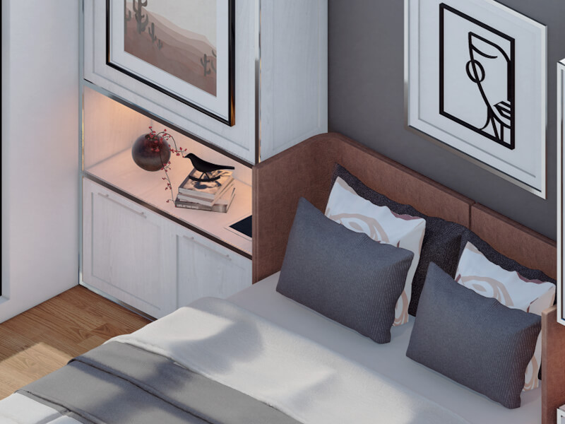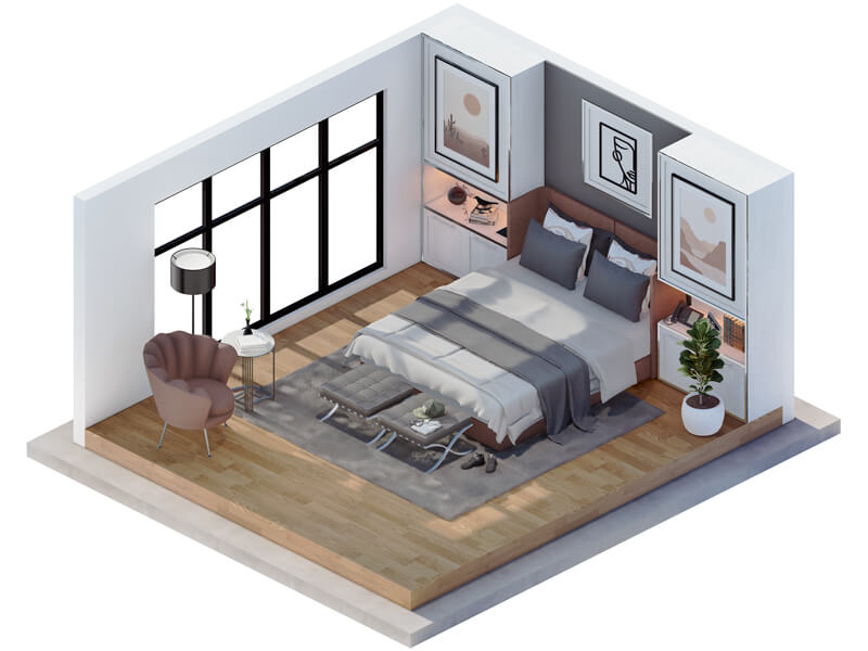 The transitional style can help you create a bedroom that is modern and simplified. It is a style that takes inspiration from both traditional and contemporary styles to produce a look that is neither too ornate nor too simplistic. Your design scheme will incorporate warm colors and earth tones, such as browns, whites, and creams, to create a relaxed, airy ambiance with a touch of elegance. This space will feature simple and understated furniture. It has a style on its own, with tall, masculine headboards and pieces with clean lines and neutral colors carefully combined. Everything works together perfectly according to your taste.
