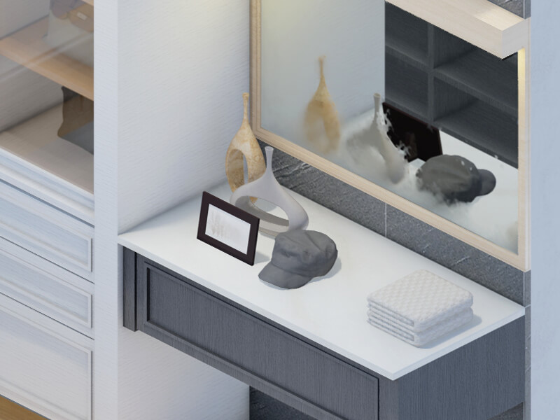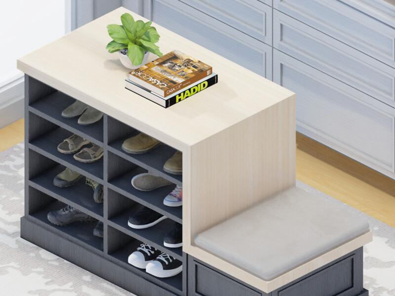 There is a current trend in closet design of creating storage solutions that make the most efficient use of space. This means that closets are being designed to maximize storage capacity while still remaining within the confines of the overall space available. This space has a contemporary look with a color palette that brings out the best in your home's existing interior spaces. The walls and ceiling are light-colored, and the flooring is high-gloss and polished. This chic and stylish closet is designed to make the most of your space, whether you have a small apartment or condo. We can make your closet dreams come true at Contemporary Closets with its rows and rows of shelving, plus a few fold-down racks, providing ample room for clothing of all types. Here you will find stylish clothing and accessories neatly displayed. Sleek and chic furniture completes the look.