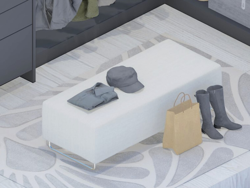 There is a current trend in closet design of creating storage solutions that make the most efficient use of space. This means that closets are being designed to maximize storage capacity while still remaining within the confines of the overall space available. This space has a contemporary look with a color palette that brings out the best in your home's existing interior spaces. The walls and ceiling are light-colored, and the flooring is high-gloss and polished. This chic and stylish closet is designed to make the most of your space, whether you have a small apartment or condo. We can make your closet dreams come true at Contemporary Closets with its rows and rows of shelving, plus a few fold-down racks, providing ample room for clothing of all types. Here you will find stylish clothing and accessories neatly displayed. Sleek and chic furniture completes the look.
