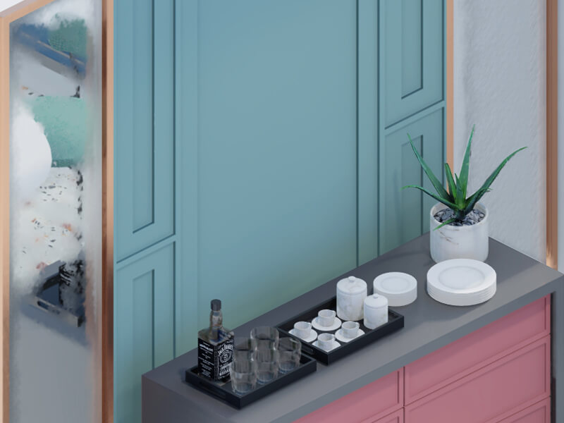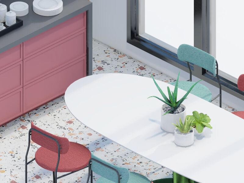 The dining room has a sleek, contemporary look with uncluttered spaces and a few accents and decorations. The colors are neutral, and the dining areas have white or pastel walls. The dining room furniture consists of light fixtures, simple lines, and upholstered chairs, with wooden or metal tables. This design style is all about clean lines, natural colors and elements, geometric patterns and designs, and continuous surfaces. The focus is on things like elegance, sophistication, and minimalism.