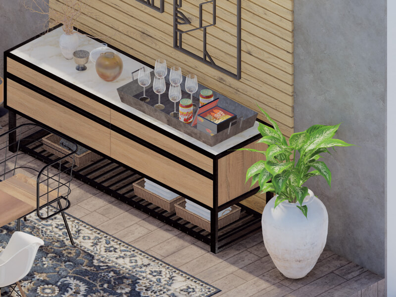 You can have the best of both worlds in your home with our industrial dining room design! This design is perfect for mixing old and new, rough and smooth, and metal and wood to create a vintage look that is never out of style. The old wood furniture and metal chairs create a unique industrial look that is both comfortable and stylish. The distressed wood and raw lighting fixtures add to the aesthetic and complete the look. This dining room is designed to make your dining experience more enjoyable. With its stylish design and comfortable atmosphere, you'll never want to leave!