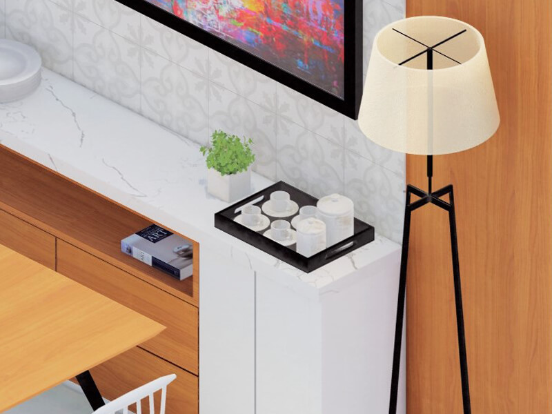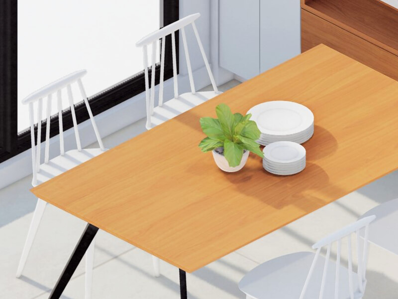 The dining room has a sleek, contemporary look with uncluttered spaces and a few accents and decorations. The colors are neutral, and the dining areas have white or pastel walls. The dining room furniture consists of light fixtures, simple lines, and upholstered chairs, with wooden or metal tables. This design style is all about clean lines, natural colors and elements, geometric patterns and designs, and continuous surfaces. The focus is on things like elegance, sophistication, and minimalism.
