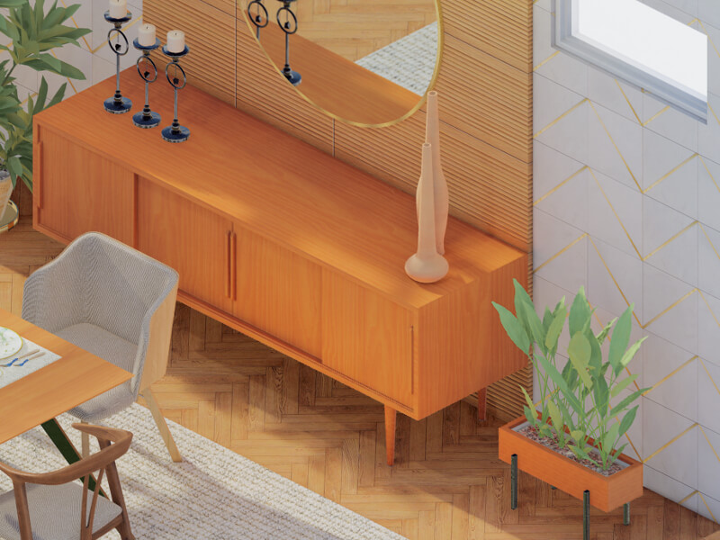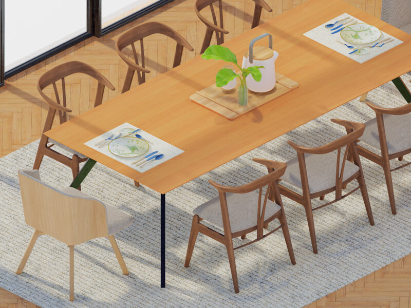 The dining room has a sleek, contemporary look with uncluttered spaces and a few accents and decorations. The colors are neutral, and the dining areas have white or pastel walls. The dining room furniture consists of light fixtures, simple lines, and upholstered chairs, with wooden or metal tables. This design style is all about clean lines, natural colors and elements, geometric patterns and designs, and continuous surfaces. The focus is on things like elegance, sophistication, and minimalism.