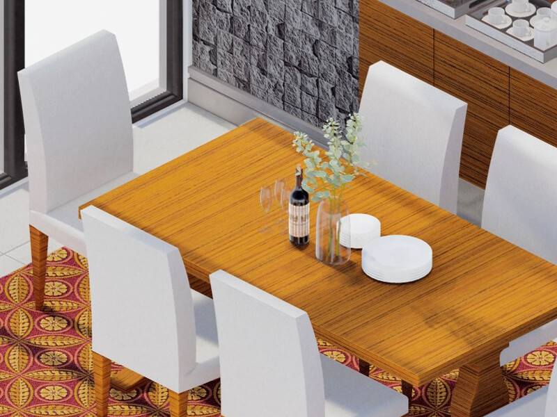 The dining room has a sleek, rustic look with uncluttered spaces and a few accents and decorations. The colors are neutral, and the dining areas have white or pastel walls. The dining room furniture consists of light fixtures, simple lines, and upholstered chairs, with wooden or metal tables. This design style is all about clean lines, natural colors and elements, geometric patterns and designs, and continuous surfaces. The focus is on things like elegance, sophistication, and minimalism.