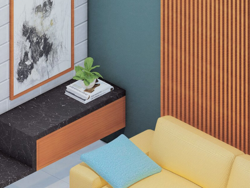 Looking for a sleek and contemporary fireplace design? Tiny Rooms is the perfect place to start your search. Fireplaces are available in a variety of shades to match your wood furnishings and create a stunning monochromatic effect. The black fireplace surround is sleek and adorned with a geometric pattern. The bookshelf next to it has similar designs, but with vertical and horizontal lines to accent the stylishness of the fireplace. The small decorative mirror on the mantelpiece reflects light upwards, adding to the cozy ambiance and creating a warm atmosphere. The light reflecting off of the mirror brightens up the room and makes it feel more welcoming.