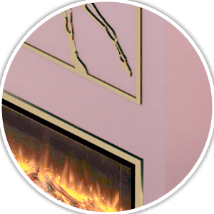 Looking for a sleek and contemporary fireplace design? Tiny Rooms is the perfect place to start your search. Fireplaces are available in a variety of shades to match your wood furnishings and create a stunning monochromatic effect. The black fireplace surround is sleek and adorned with a geometric pattern. The bookshelf next to it has similar designs, but with vertical and horizontal lines to accent the stylishness of the fireplace. The small decorative mirror on the mantelpiece reflects light upwards, adding to the cozy ambiance and creating a warm atmosphere. The light reflecting off of the mirror brightens up the room and makes it feel more welcoming.
