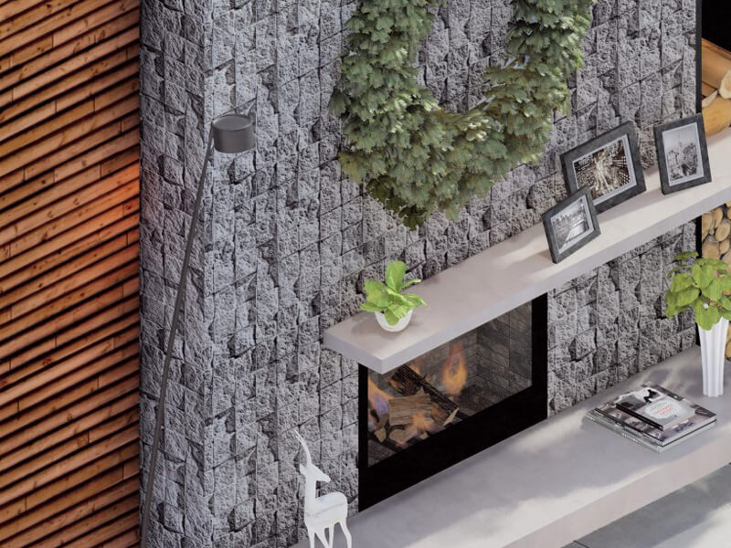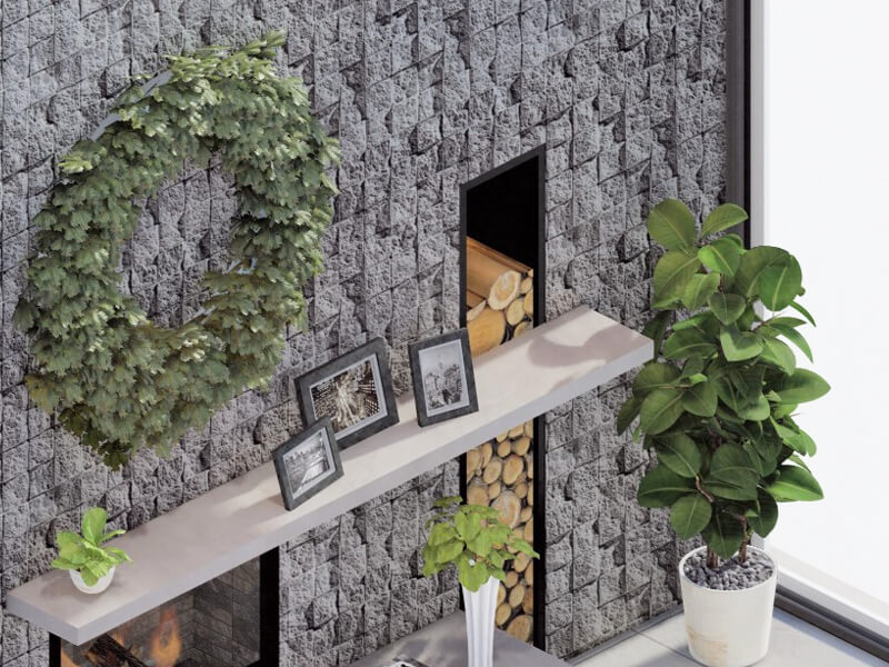 Looking for a sleek and rustic fireplace design? Tiny Rooms is the perfect place to start your search. Fireplaces are available in a variety of shades to match your wood furnishings and create a stunning monochromatic effect. The black fireplace surround is sleek and adorned with a geometric pattern. The bookshelf next to it has similar designs, but with vertical and horizontal lines to accent the stylishness of the fireplace. The small decorative mirror on the mantelpiece reflects light upwards, adding to the cozy ambiance and creating a warm atmosphere. The light reflecting off of the mirror brightens up the room and makes it feel more welcoming.