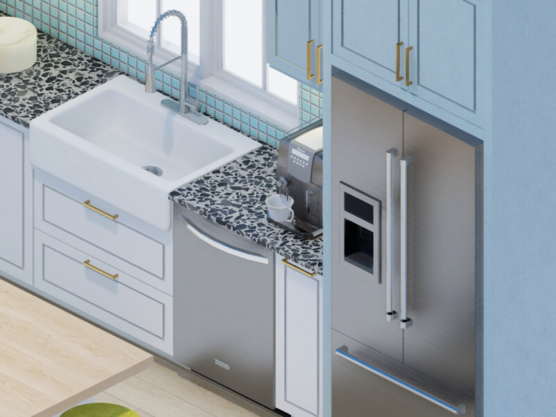To unify the room’s style, this island matches the cabinetry, worktops, backsplash, and flooring, in its perfect way. Because of the wide variety of tile looks available, this ceramic kitchen island pulls all the elements of your kitchen together without compromising on style. It is the perfect way to upgrade your kitchen in both style and durability.