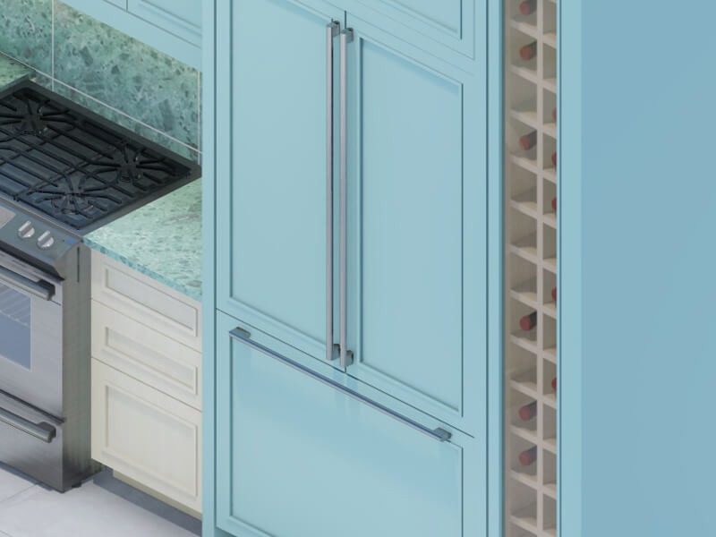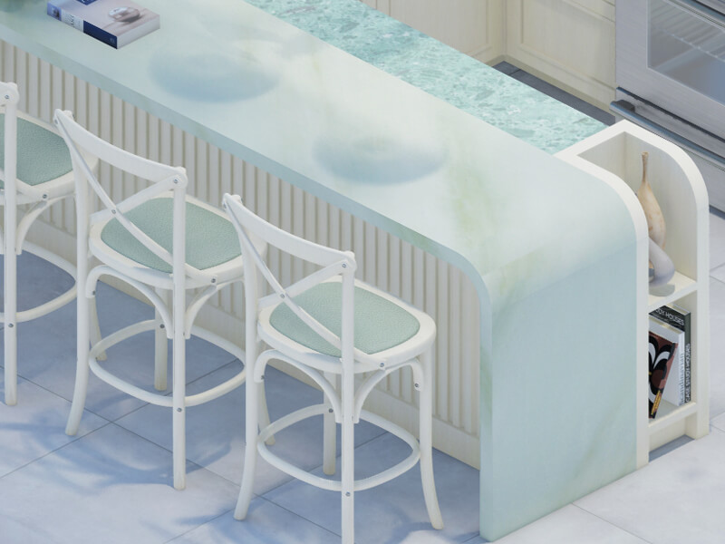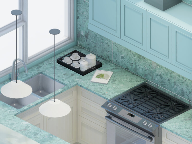 It effortlessly blends with coastal-inspired elements like nautical accents, rattan furniture, and light-colored cabinetry, allowing you to create a coastal oasis in your own kitchen.