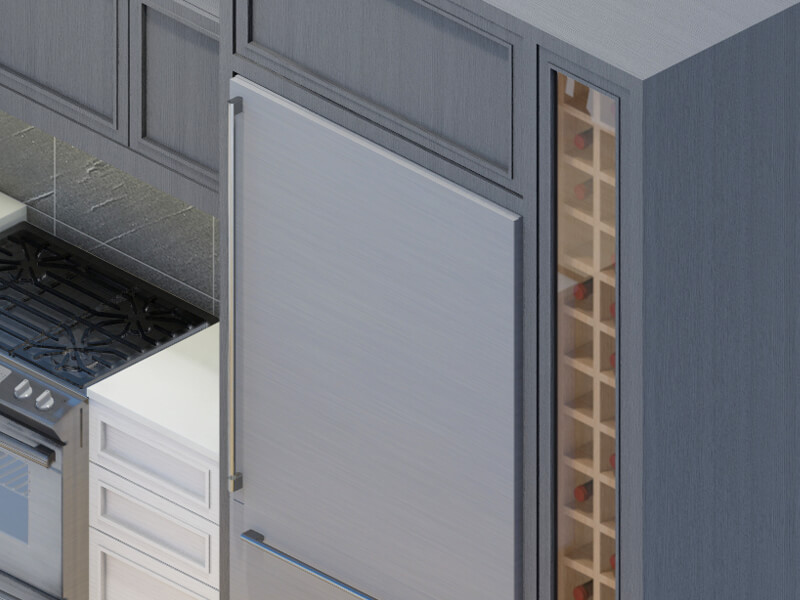 The refrigerator features classic finishes, such as rich wood panels, intricate hardware, and elegant detailing, creating a focal point that seamlessly integrates into your craftsman style kitchen.