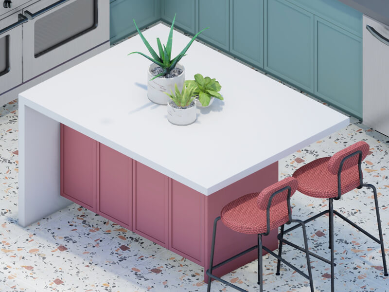 To unify the room’s style, this island matches the cabinetry, worktops, backsplash, and flooring, in its perfect way. Because of the wide variety of tile looks available, this ceramic kitchen island pulls all the elements of your kitchen together without compromising on style. It is the perfect way to upgrade your kitchen in both style and durability.