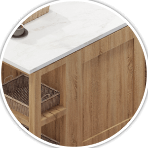 The Ceramic Island’s neutral color palette complements various kitchen decor styles, allowing it to seamlessly blend into your farmhouse-themed kitchen. Its spacious surface offers ample room for meal prep, while the additional storage options, such as drawers and shelves, provide convenient space for organizing kitchen essentials.