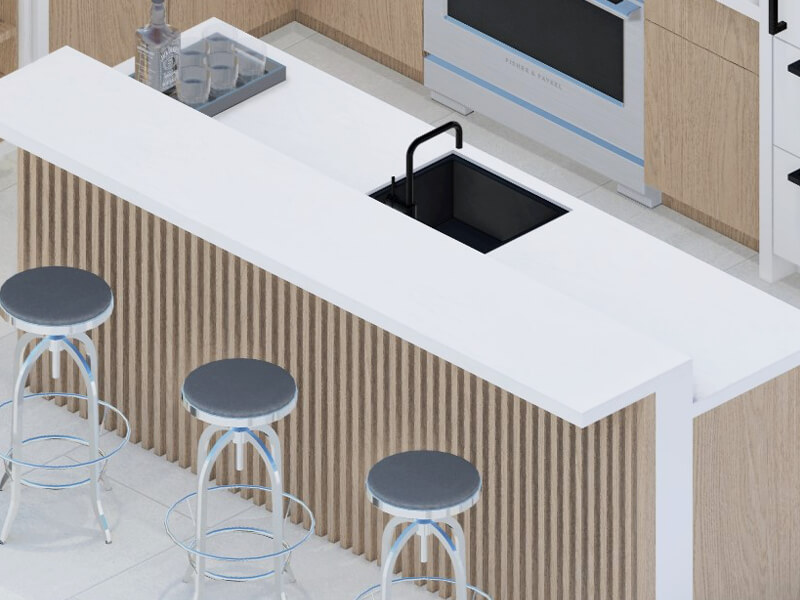 To unify the room’s style, this island matches the cabinetry, worktops, backsplash, and flooring, in its perfect way. Because of the wide variety of tile looks available, this ceramic kitchen island pulls all the elements of your kitchen together without compromising on style. It is the perfect way to upgrade your kitchen in both style and durability.