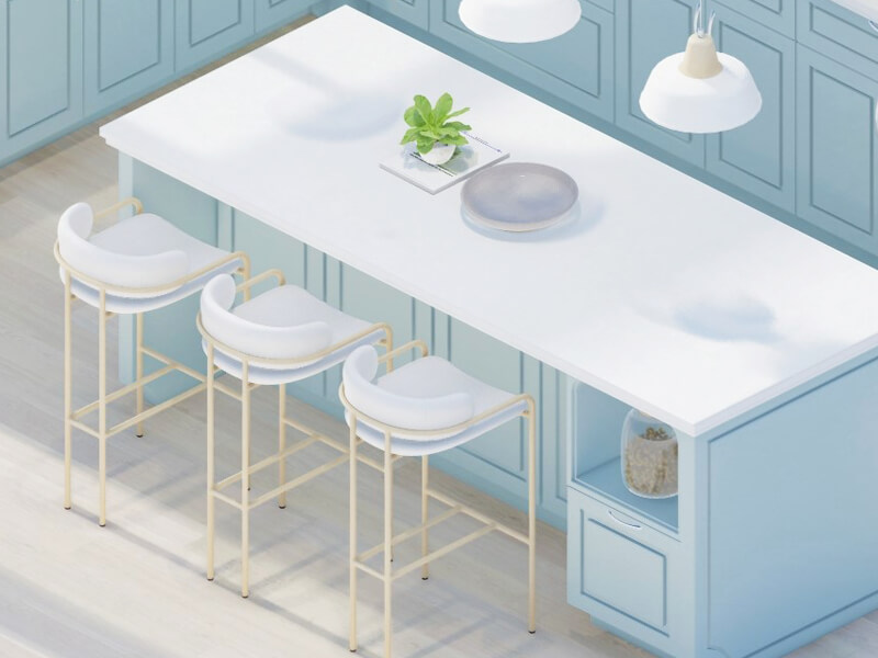 To unify the room’s style, this island matches the cabinetry, worktops, backsplash, and flooring, in its perfect way. Because of the wide variety of tile looks available, this ceramic kitchen island pulls all the elements of your kitchen together without compromising on style. It is the perfect way to upgrade your kitchen in both style and durability.