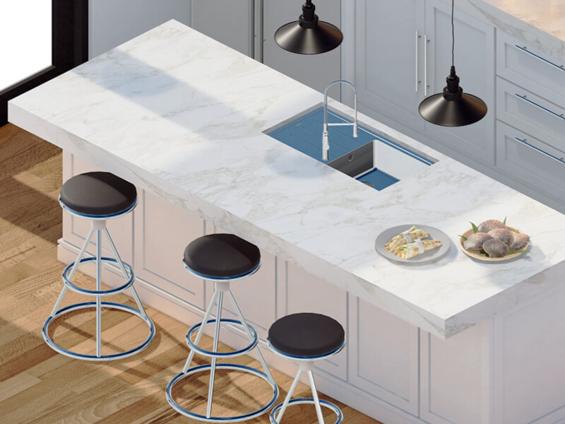 This kitchen design has the perfect balance of modern and traditional elements. The colors are warm and cool, and it has a sophisticated low-key look. The cabinet design with square doors and an inset panel can be easily updated with a Shaker-style door with a natural timber finish. A kitchen cabinet design with square doors and an inset panel can be easily updated by adding Shaker-style doors with a natural timber finish. To brighten and deepen the space, paint the walls in whites or off-whites. For a low-maintenance kitchen that is also strong and durable, use linen, hessian, cotton, and velvet textures in your soft furnishings.