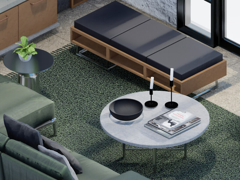 • A timeless space that is elegant and sophisticated, with its use of color, pattern, and shapes.
