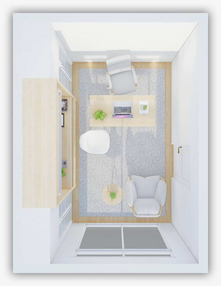 “I’m so happy with my home office transformation! The minimalist style is perfect for my needs, and the price was unbeatable. I would definitely recommend Tiny Rooms to anyone looking for home office design.”
